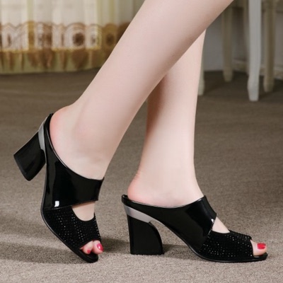 두꺼운 굽 라인 토오픈 왕발 샌달 슬리퍼