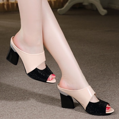 2022 여름 새 가죽 통굽힐 여성용 샌들 두꺼운 굽 라인 토오픈 왕발 슬리퍼 여성용 예쁜 디자인 작은발 샌달